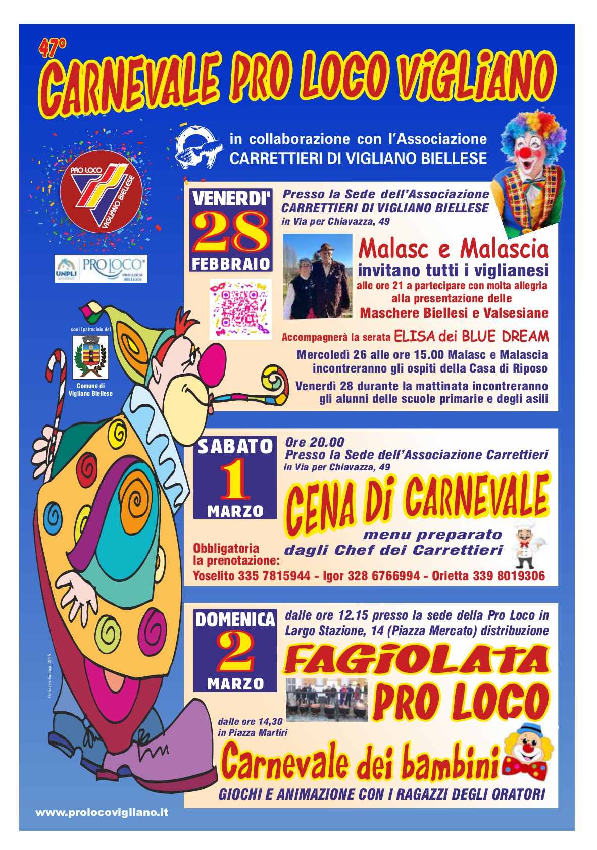 Il Malasc e la Malascia vi invitano al 47° Carnevale della Pro Loco che,anche quest’anno, comprenderà la famosissima fagiolata e il Carnevale dei bambini in piazza.