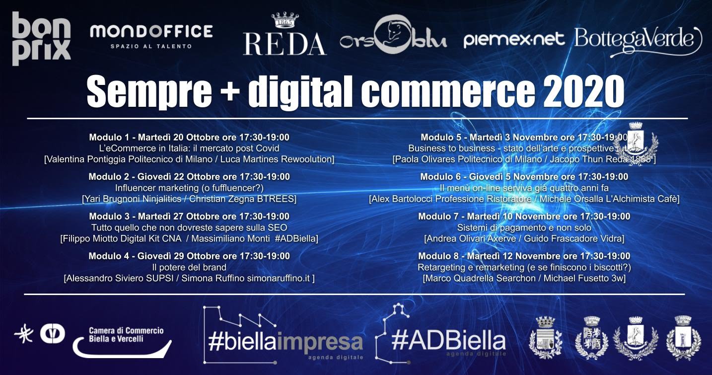 Il Comune di Vigliano Biellese ha promosso, all' interno di Agenda Digitale Biella, il progetto “Sempre+ Digital Commerce 2020”, per fornire a tutti gli operatori economici, utili informazioni per orientarsi nel mondo della vendita online.