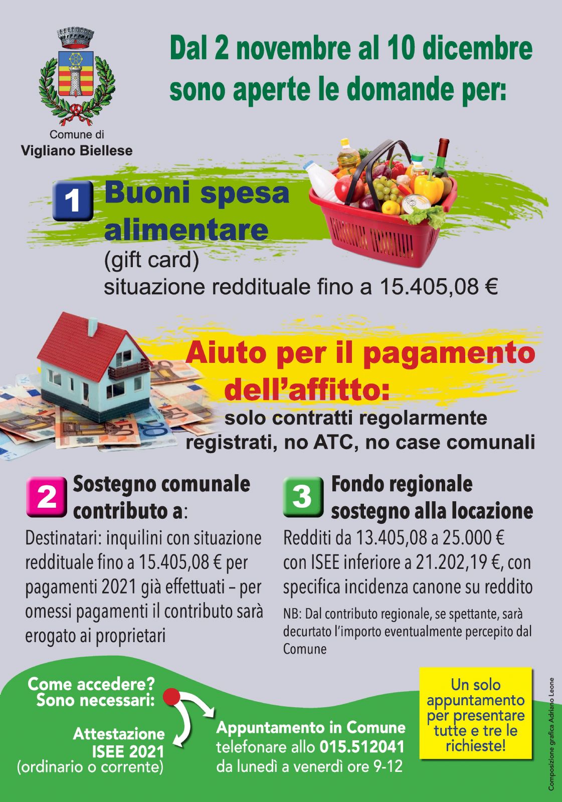 - sei residente a Vigliano Biellese;hai un contratto di affitto regolarmente registrato e attivo da almeno gennaio 2021;