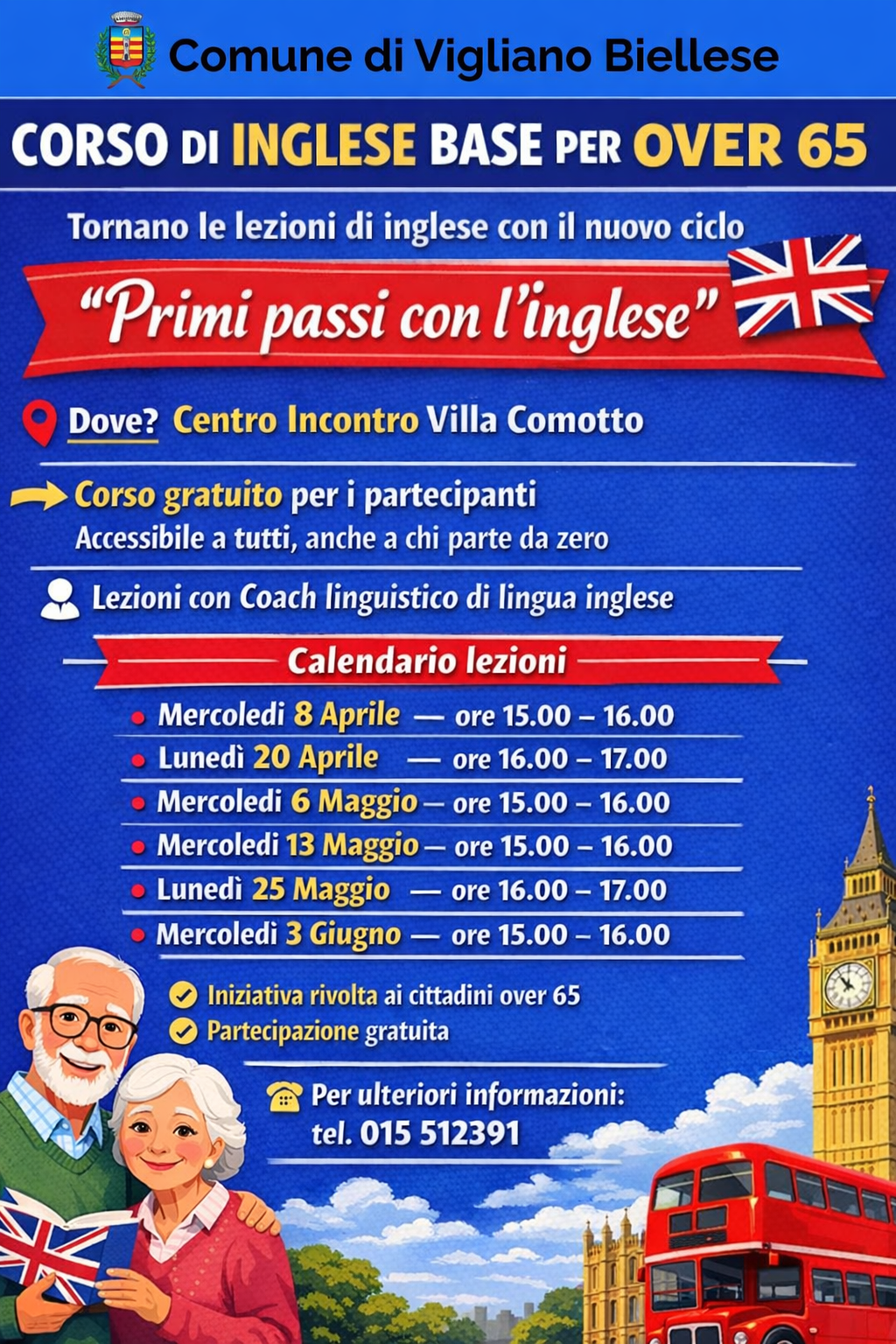 Dopo il successo dei precedenti cicli, ritorna l'appuntamento con "Primi passi con l’inglese", un percorso pensato specificamente per i cittadini over 65 che desiderano familiarizzare con la lingua più parlata al mondo.