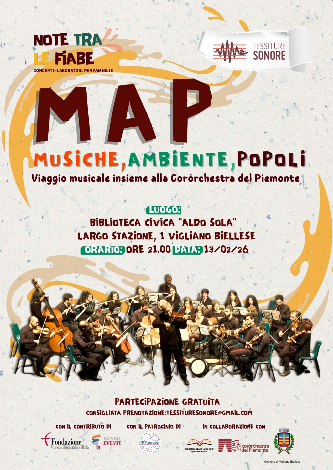 La biblioteca di Vigliano Biellese ha aderito al progetto: "Note tra le fiabe", realizzato dall'associazione Tessiture Sonore APS Con il contributo di Fondazione Cassa di Risparmio di Biella - Bando Eventi 2025.