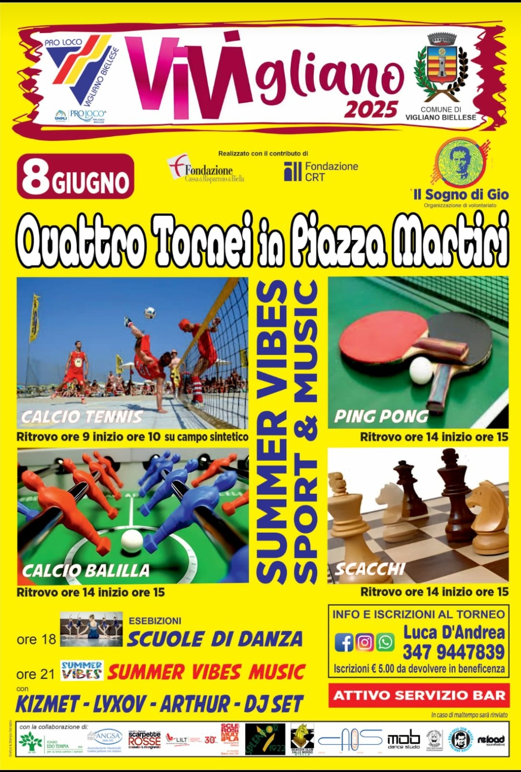 € 5,00 di iscrizione ai tornei da devolvere in beneficenza