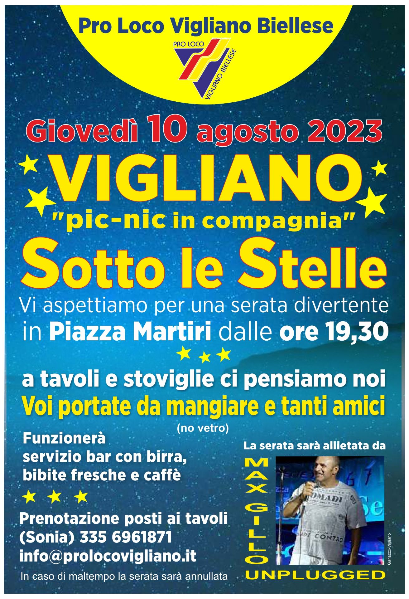 Anche quest'anno la Pro Loco di Vigliano B.se propone per la notte di San Lorenzo, giovedì 10 Agosto 2023, un "pic-nic sotto le stelle", da trascorrere in compagnia delle persone a voi più care: non dovrete fare nient'altro che portare da mangiare e tanta buona compagnia, le posate e i tavoli verranno forniti direttamente dalla Pro Loco.