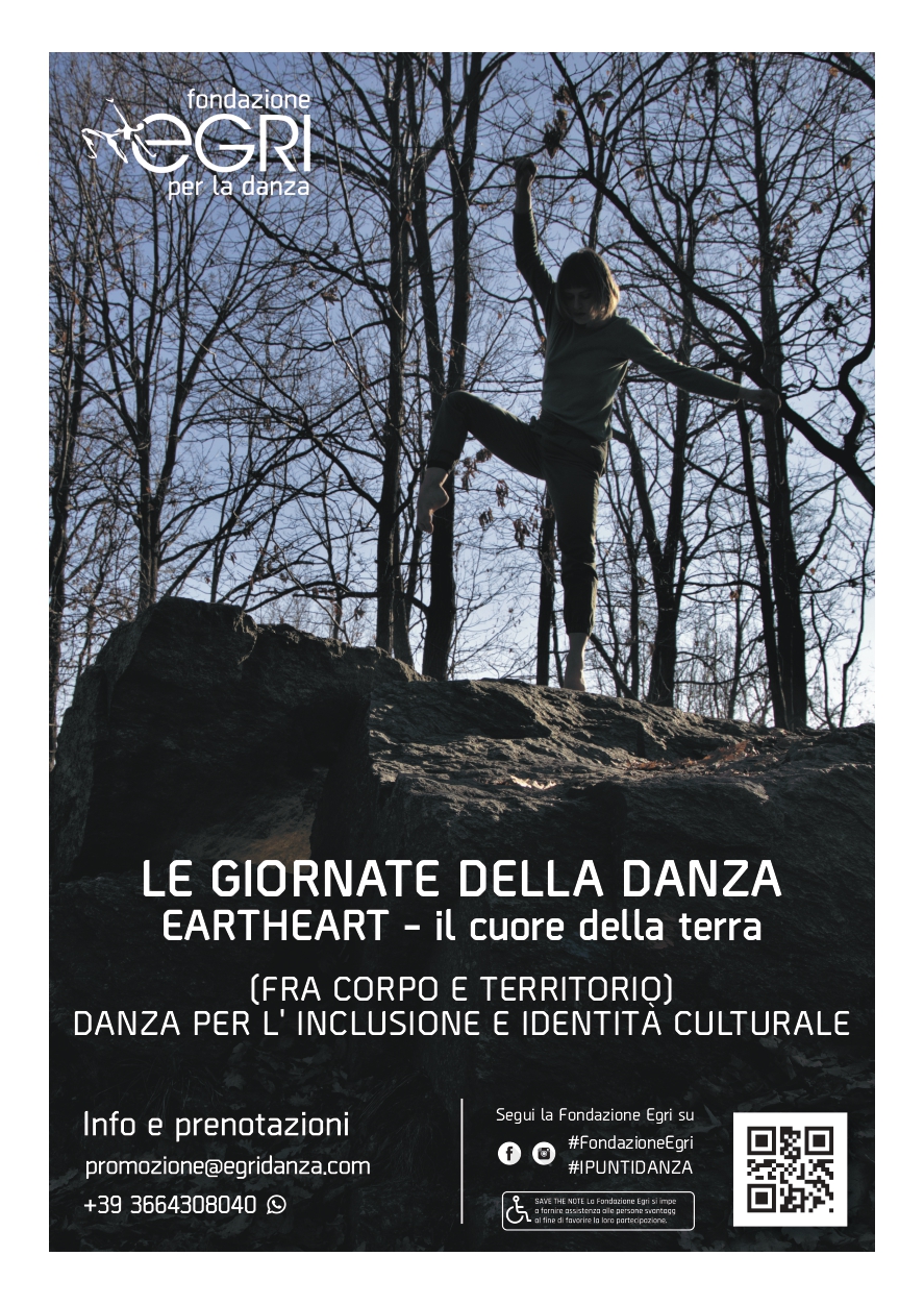 Le Giornate della Danza, progetto della Fondazione Egri per la Danza, si conferma per il terzo anno come format performativo e formativo nel contesto culturale e coreutico sul territorio del Biellese. Intorno al progetto di produzione diffusa EARTHEART – il cuore della terra della Compagnia EgriBiancoDanza le attività formative si declinano in relazione alla specificità dell’ecosistema territoriale come motore di identità culturale e sociale. La danza è lo strumento privilegiato per trasmettere valori e idee attraverso il corpo, rendendoli così universali andando al di là delle barriere della parola.