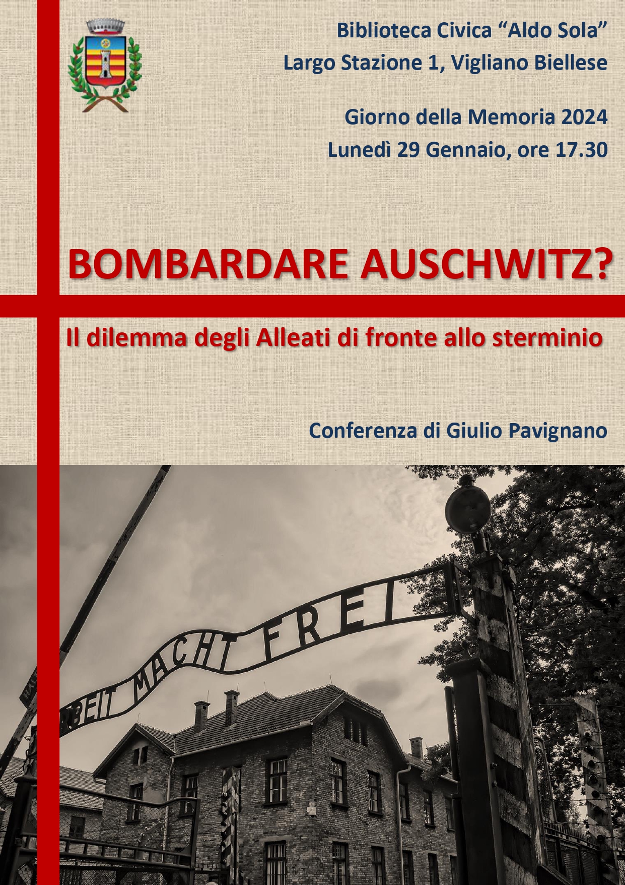 Per il giorno della Memoria il comune di Vigliano Biellese propone un appuntamento con Giulio Pavignano dal titolo: “Bombardare Auschwitz?”.