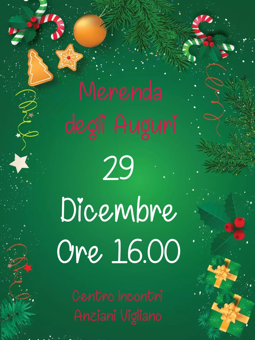 Il 29 Dicembre, dalle ore 16.00, il Centro Incontro Anziani sarà eccezionalmente aperto per lo scambio degli auguri!