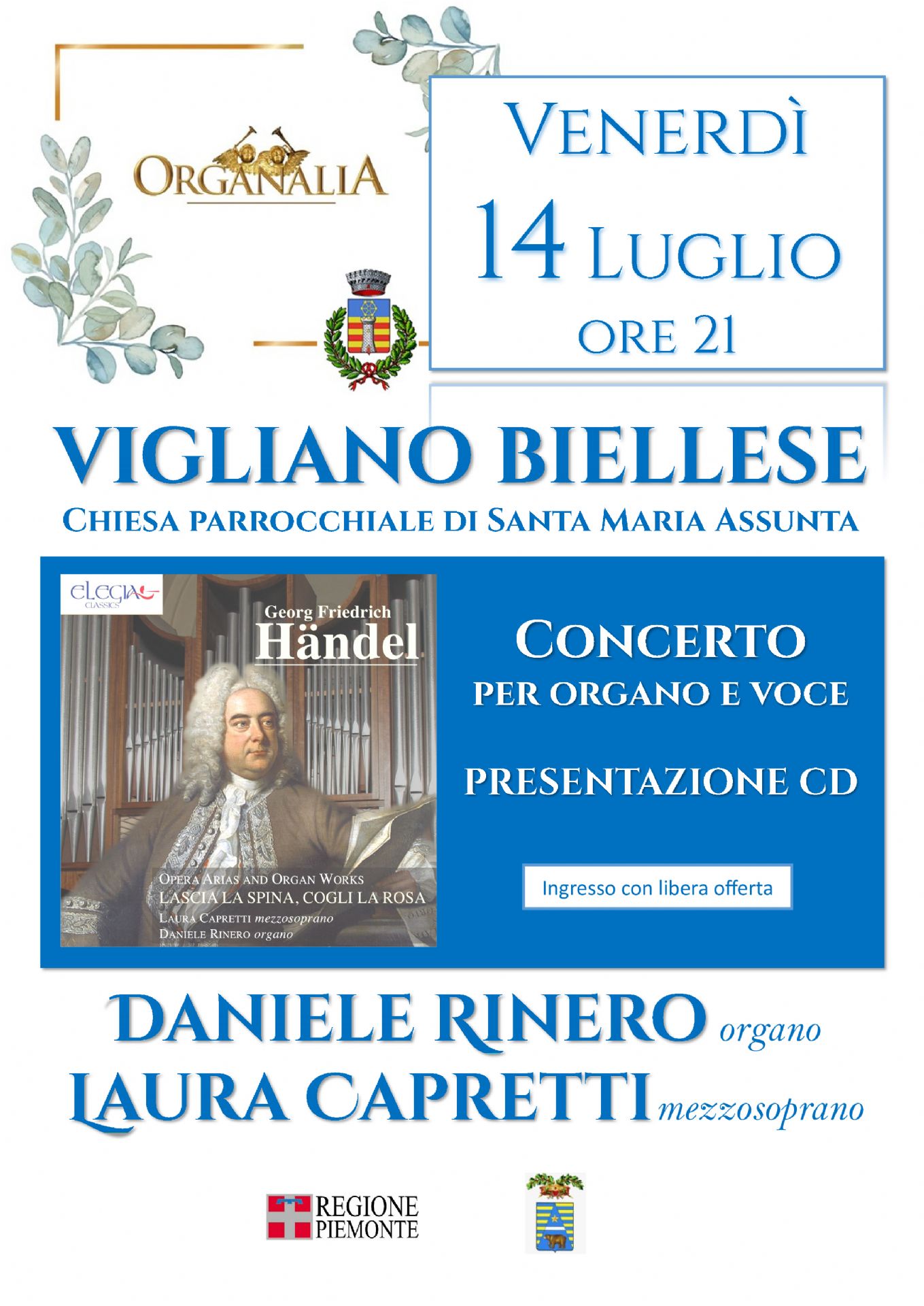 Il ventesimo concerto di Organalia 2023 si terrà a Vigliano Biellese, nella Chiesa parrocchiale di Santa Maria Assunta, Venerdì 14 luglio, alle ore 21. Il concerto viene realizzato con il contributo della Fondazione CRT e del Comune di Vigliano Biellese e con i patrocini della Regione Piemonte e della Provincia di Biella.