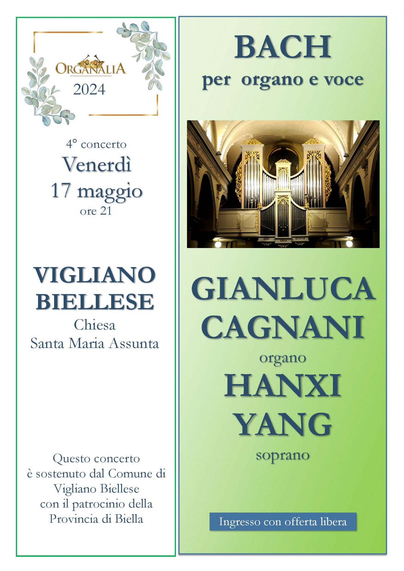 L'Associazione Organalia, nata nel 2002 con l'obiettivo di valorizzare gli organi e la musica organistica, anche per il 2024 ha elaborato una ricca rassegna musicale, che farà tappa a Vigliano Biellese venerdì 17 maggio.