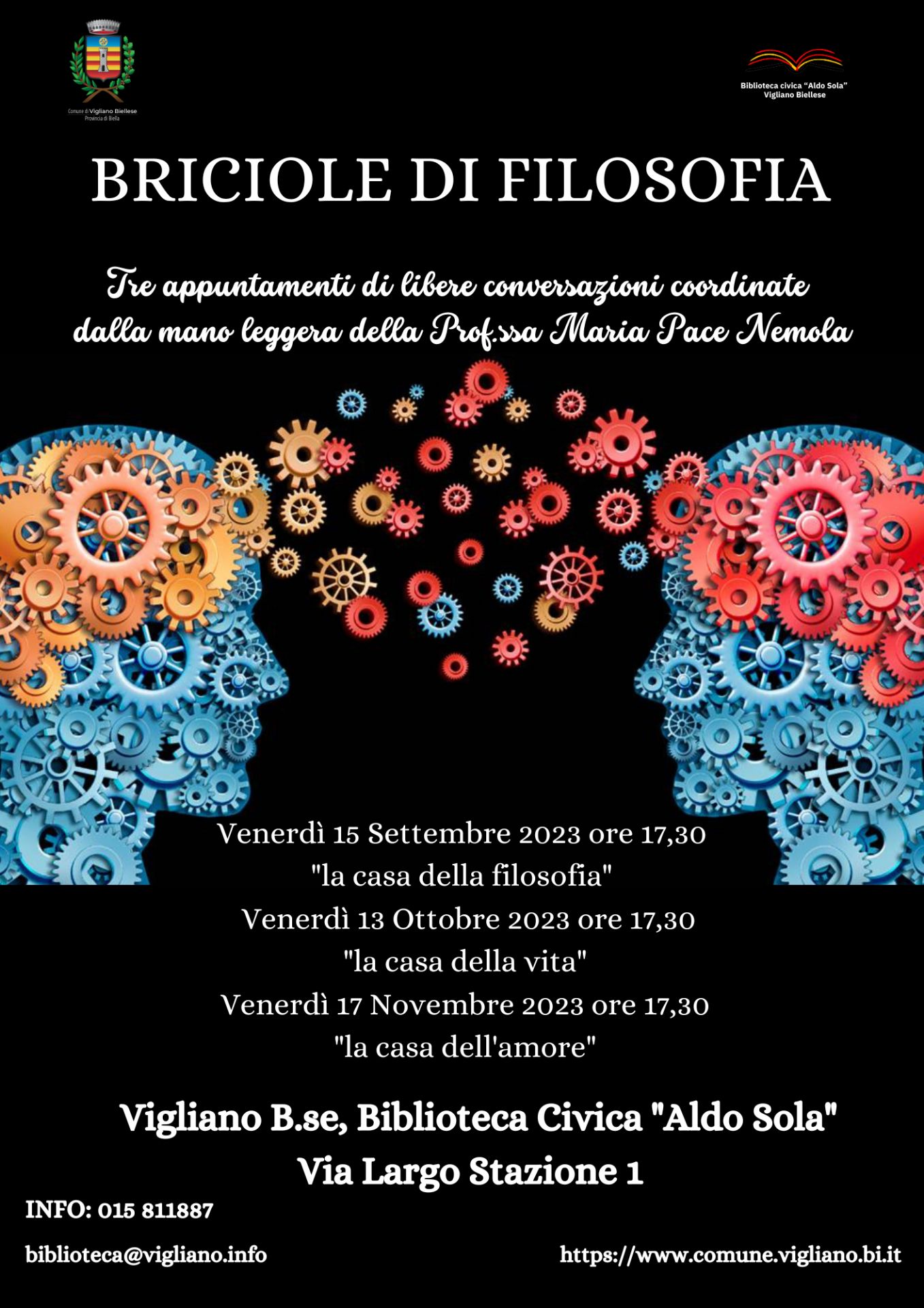 Venerdì 17 novembre alle ore 17.30 presso la biblioteca comunale, la mano leggera di Maria Pace Nemola ci guiderà nel terzo ed ultimo incontro del ciclo "Briciole di filosofia".