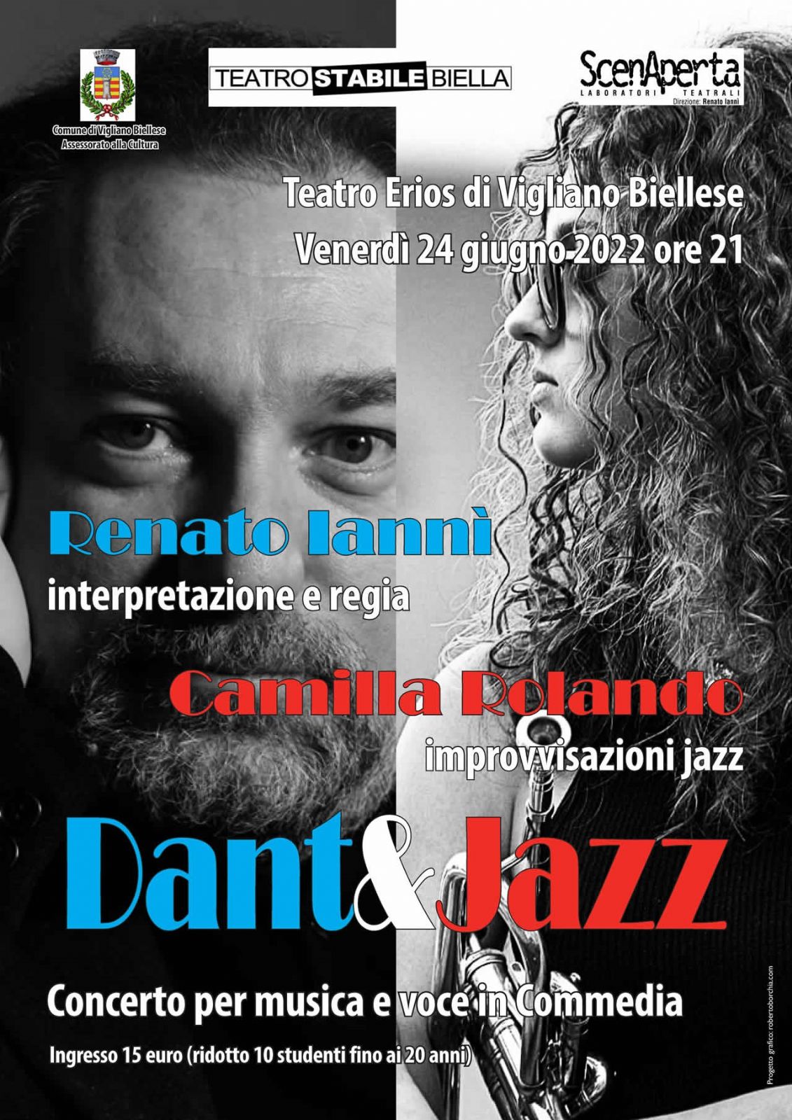Venerdì 24 Giugno al Teatro Erios, Renato Iannì porterà in scena lo spettacolo "Dant&jazz", concerto per musica e voce in Commedia, con il patrocinio del Comune di Vigliano Biellese.