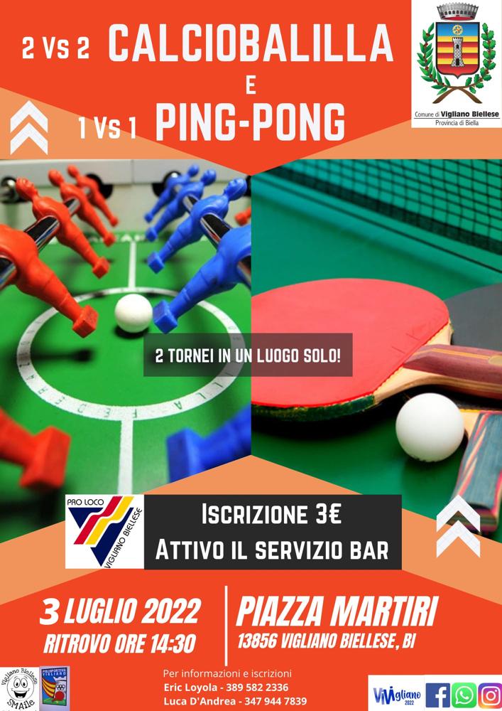 I tornei sono quelli di calciobalilla 2vs2 e di ping pong 1vs1. Il luogo è quello di Piazza Martiri Partigiani.
