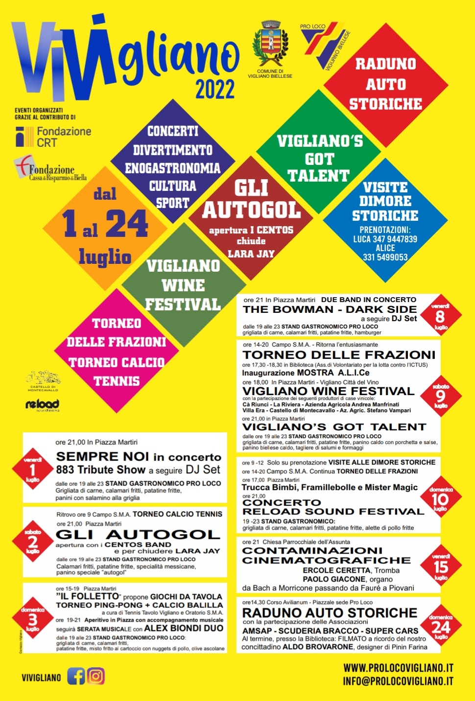 ViVigliano 2022 prosegue con una serie di appuntamenti fra musica, tornei sportivi, mostre ed esposizioni.