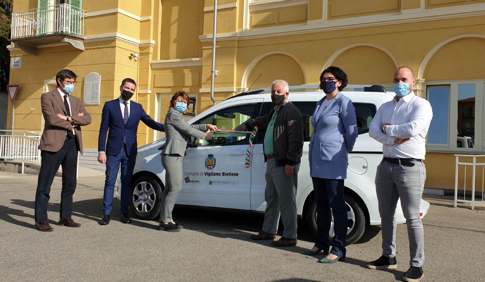 Alle ore 10.00 di venerdì 2 aprile, nella Piazza Roma, è stato ufficialmente consegnato al Comune il nuovo automezzo Ford Courier acquistato grazie al contributo di Fondazione CRB e Biverbanca nell’ambito del bando “Ripartiamo Insieme – Emergenza Covid 19”, cui il Comune ha partecipato nella primavera scorsa con il progetto “Vigliano solidale”. Il Sindaco Cristina Vazzoler e gli Assessori ai Servizi Sociali, Elena Ottino, e al Volontariato, Luca D’Andrea, per una breve cerimonia di inaugurazione hanno accolto il dott. Andrea Quaregna, Vice Segretario Generale di Fondazione della Cassa di Risparmio di Biella ed il dott. Tito Ferro, Direttore della Filiale Biverbanca di Vigliano Biellese. E’ inoltre intervenuto il Presidente dell’Associazione Opera, Antonio Mordini.