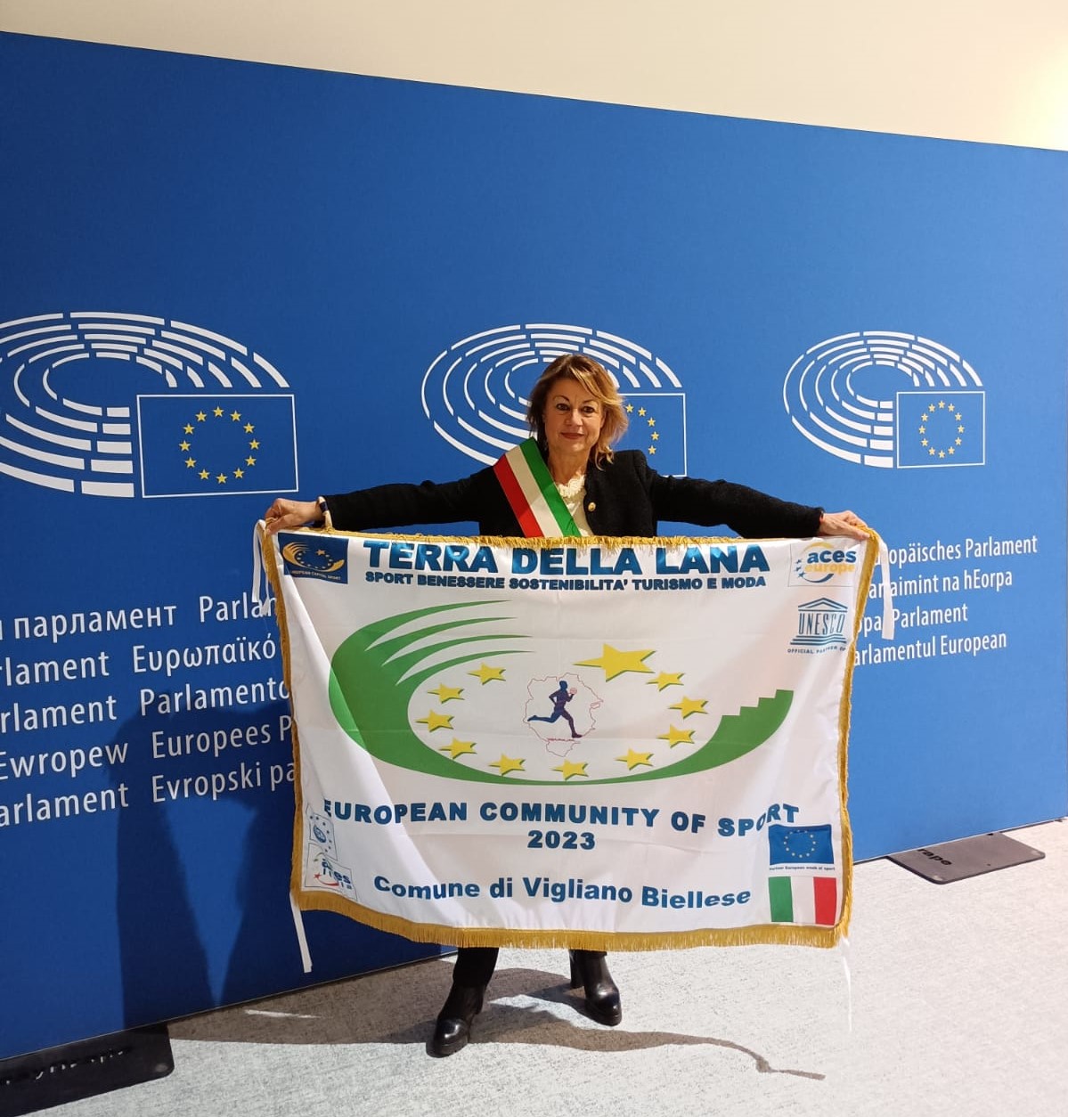 Il 6 dicembre scorso, il Sindaco, Cristina Vazzoler, insieme ad una folta delegazione di sindaci biellesi partecipanti al progetto Comunità Europea dello Sport 2023 “Terra della Lana – Sport, Benessere, Turismo, Moda” è stata accolta al Parlamento Europeo di Bruxelles, alla cerimonia Annual Awards ACES Europe, per la consegna ufficiale delle bandiere.