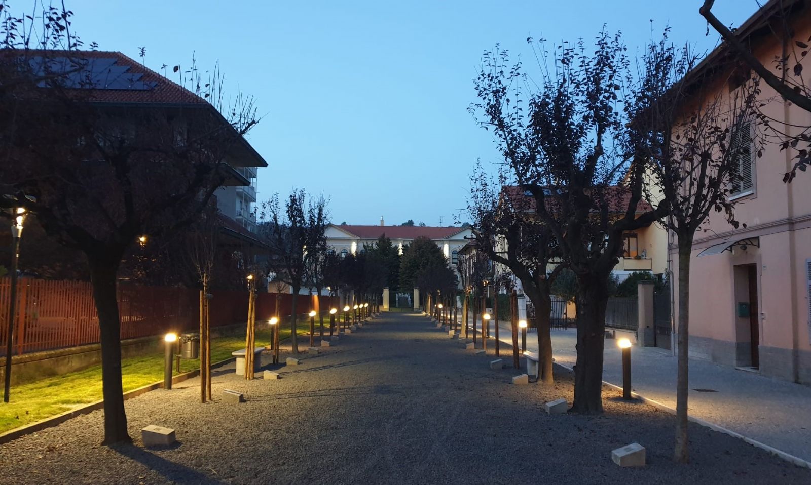 «Un obiettivo importante – spiega il Sindaco, Cristina Vazzoler - per restituire dignità ad un luogo di alto valore commemorativo che prima dell’intervento di riqualificazione appariva consumato dal tempo nonostante i numerosi interventi di piccola manutenzione. Oggi i 60 cippi sono stati rinnovati, con interventi rispettosi della storia del luogo. Nel dettaglio, è stata effettuata la sostituzione degli alberi malati con essenze della stessa specie; con una potatura generale sono state regolarizzare le chiome degli alberi esistenti. Un nuovo percorso ciclo pedonale, in calcestruzzo architettonico (che richiama la pezzatura della ghiaia), affianca ora la pavimentazione ghiaiosa del Viale, per consentire a tutti, anche con carrozzine e passeggini, di transitare in sicurezza. Per una tranquilla sosta all'ombra dei pruni, sono state posate due panchine in sienite della Balma. L'illuminazione del viale - prosegue il Sindaco - è completamente rinnovata con un impianto di lampioni bassi che non interferiscono con le chiome degli alberi e, nello stesso tempo, plasmano un tappeto di luce che mette in rilievo la posizione dei cippi nelle ore serali. L'intonaco dei pilastri e dei muricci laterali è stato rifatto e ritinteggiato il cancello di ingresso della scuola dell’infanzia in fondo al viale stesso.