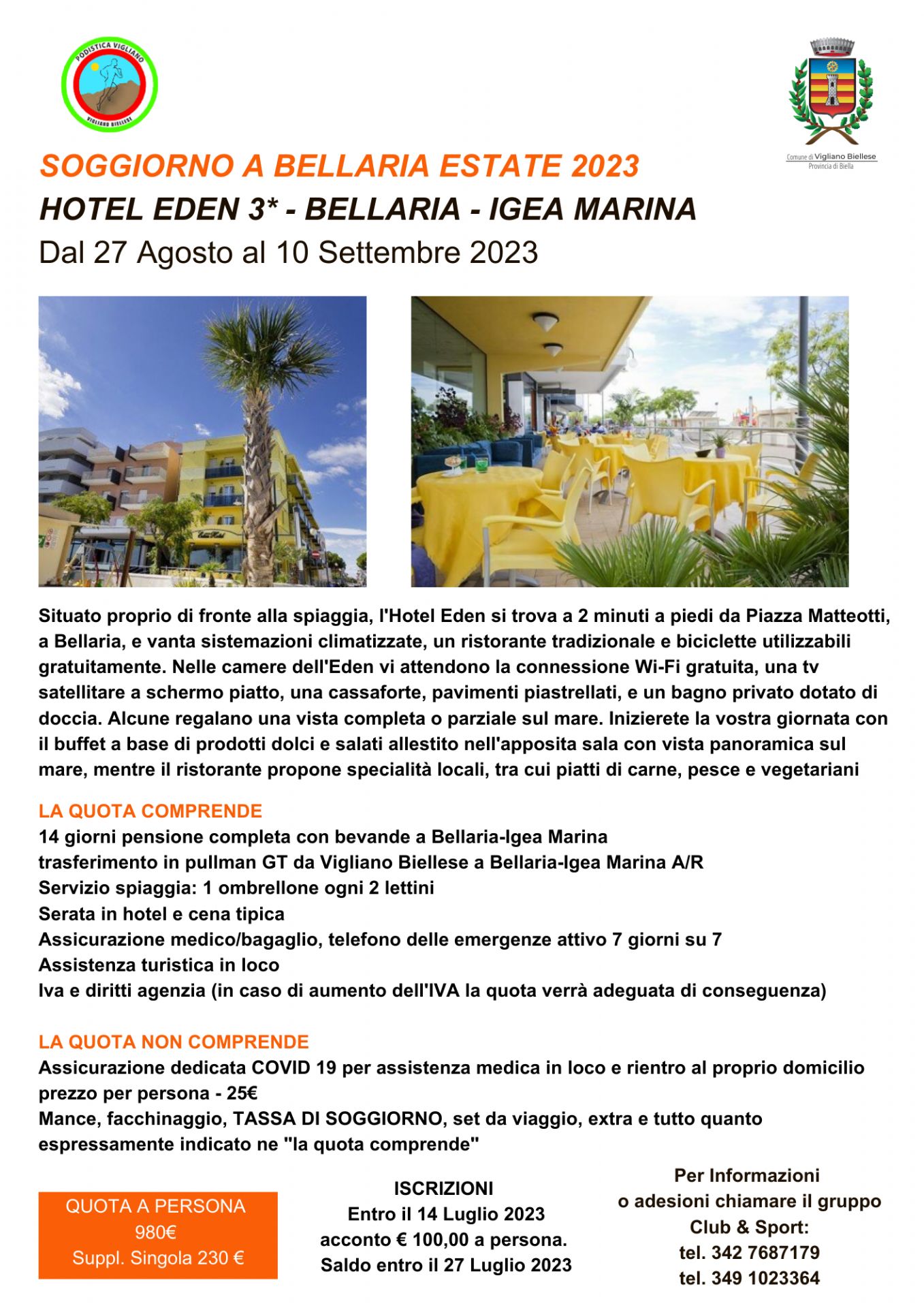 Aperte fino al 14 luglio le adesioni al soggiorno marino a Bellaria Igea Marina, organizzati dall'Associazione sportiva Podistica Vigliano, con il patrocinio del Comune.