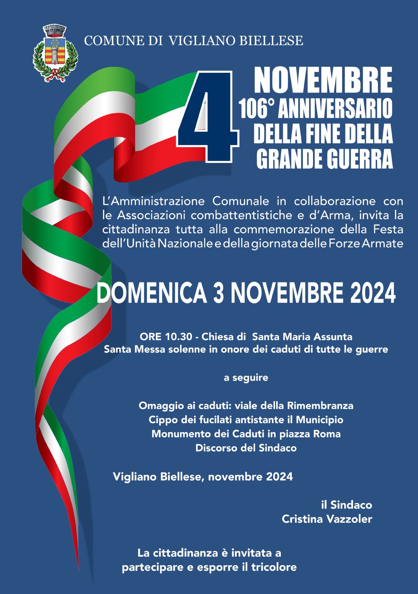 In Vigliano Biellese, la commemorazione avrà luogo DOMENICA 3 NOVEMBRE 2024.