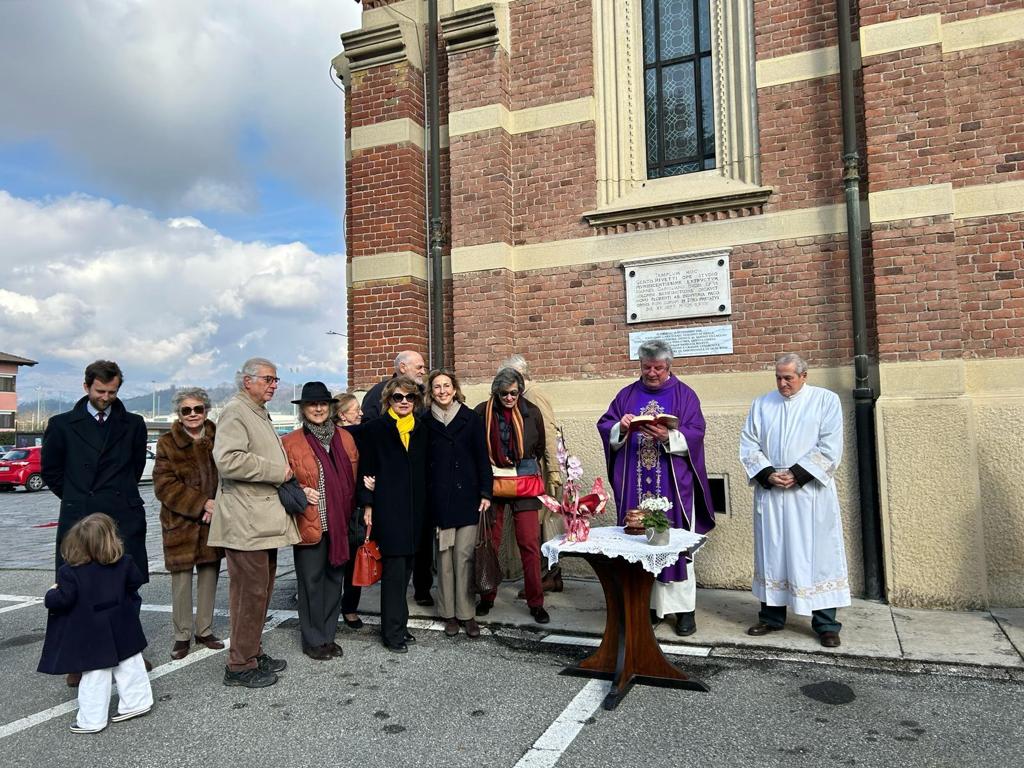 Nella foto, un momento dell’inaugurazione e benedizione della targa alla presenza del Sindaco Cristina Vazzoler, di Vittorio Donati, Emanuela Rivetti, Lunella Rivetti, Daniela Rivetti con la figlia Vittoria Frua, Albertina Rivetti, Oreste e Stefania Rivetti, Costantino e Tecla Rivetti, Silvia Casalino Rivetti.