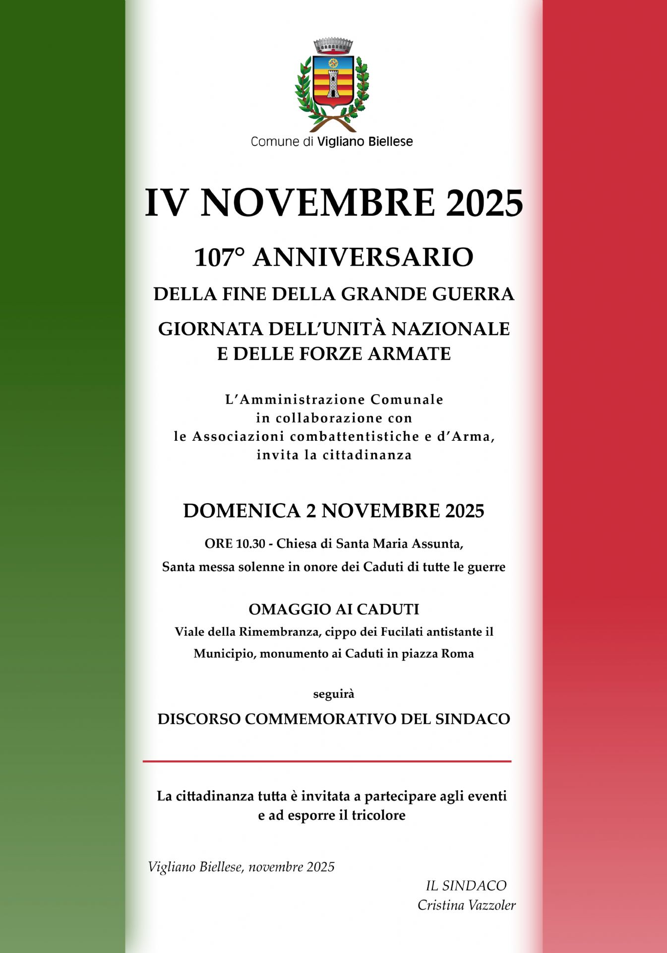 In Vigliano Biellese, la commemorazione avrà luogo DOMENICA 2 NOVEMBRE 2025.