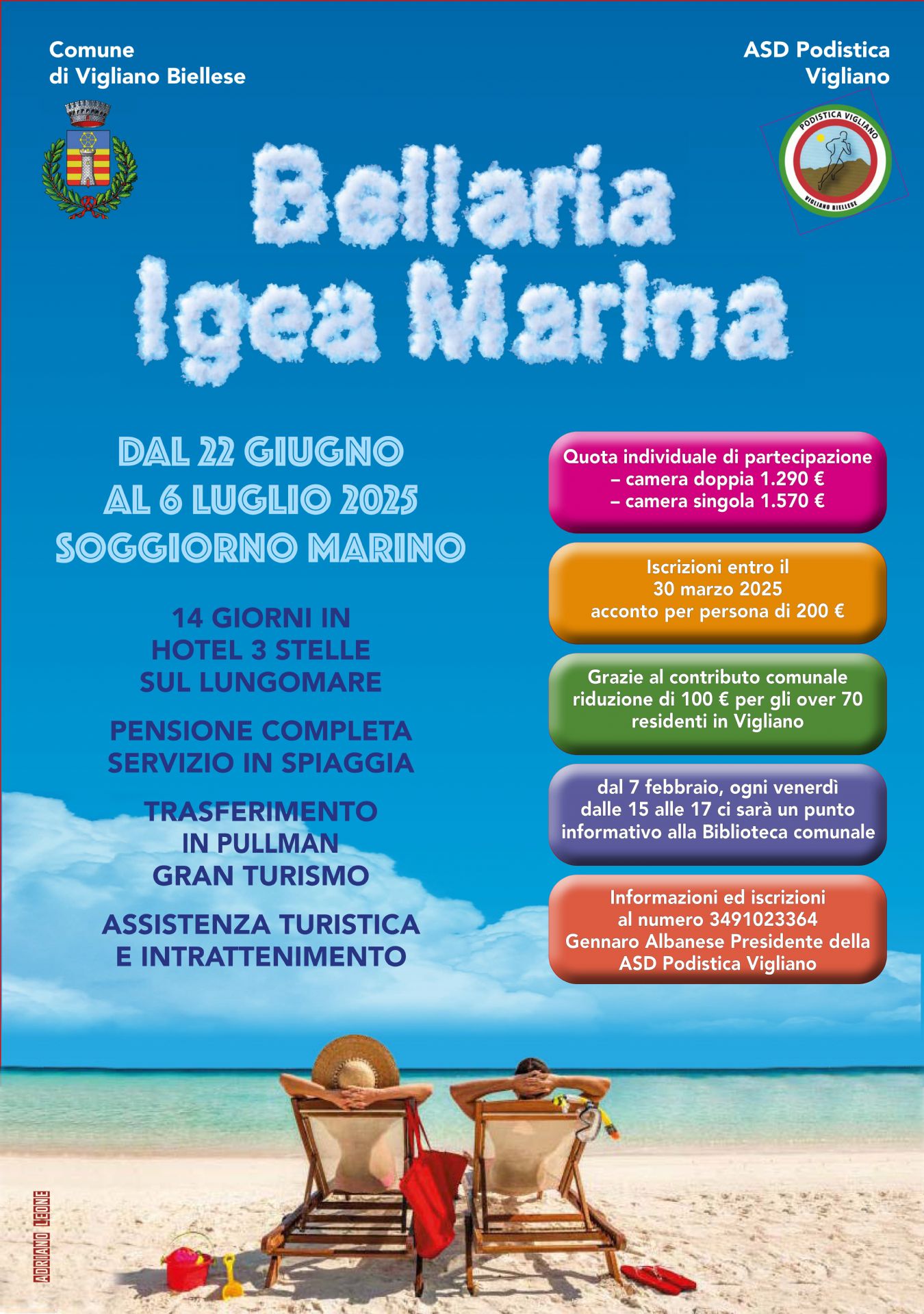 Aperte fino al 30 marzo le adesioni al soggiorno marino organizzato dall’Associazione sportiva Podistica Vigliano, con il supporto del Comune, dedicato in particolare alla popolazione anziana.